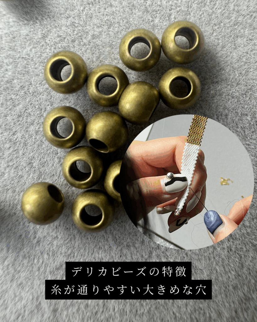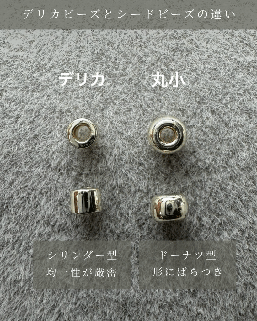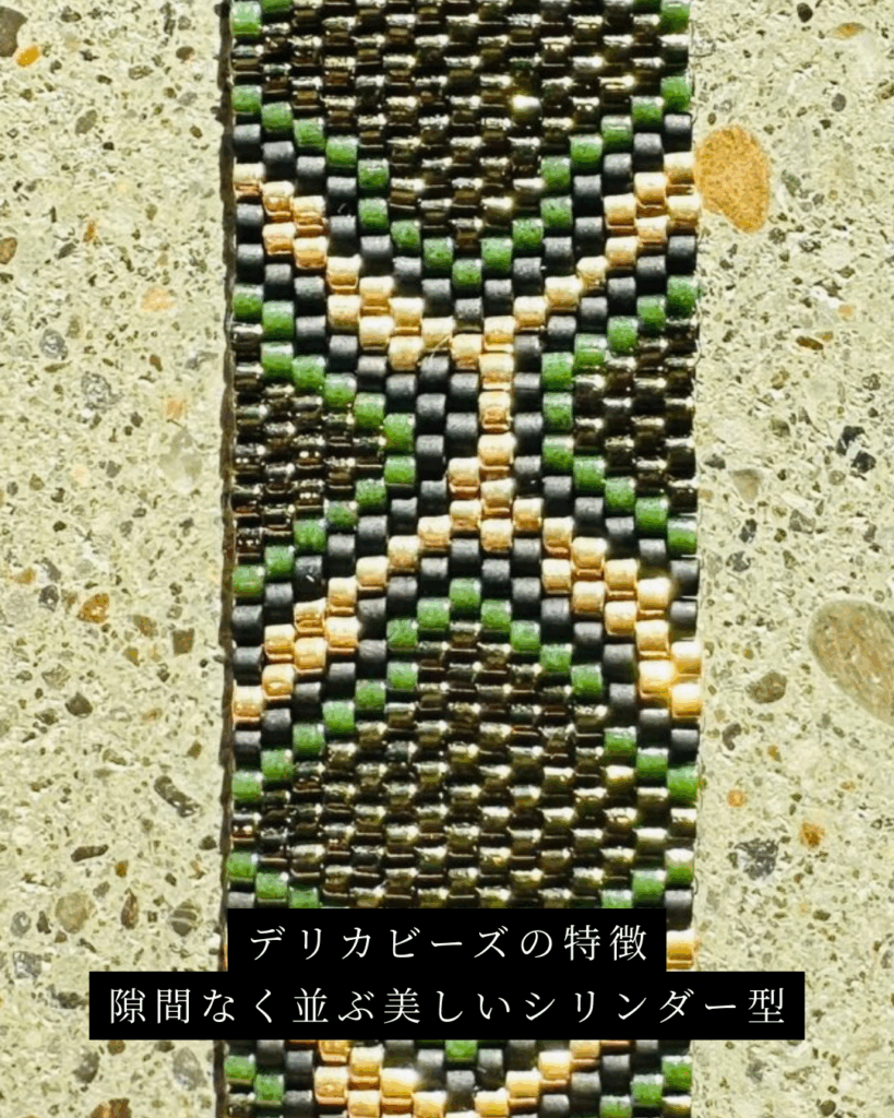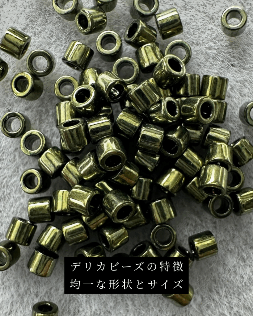 - デリカビーズはMIYUKI製の均一なシリンダー型ビーズ