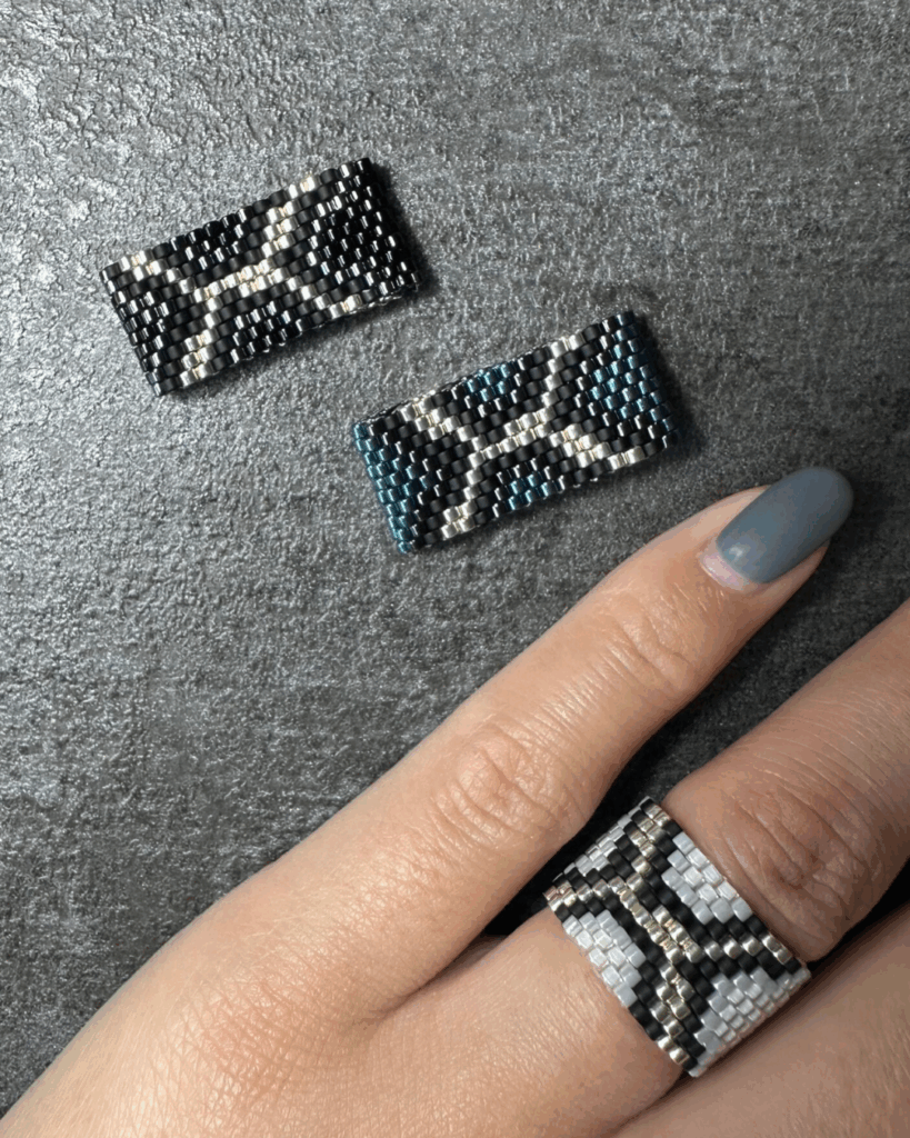 針と糸だけでビーズを編み上げていく技法です。中でもペヨーテステッチは、ビーズが互い違いにレンガのように並ぶ代表的な編み方。デリカビーズを使うことで、しなやかで美しいシート状の模様が作れます。